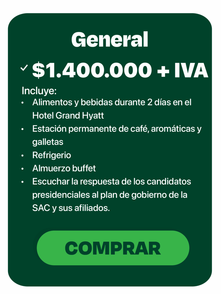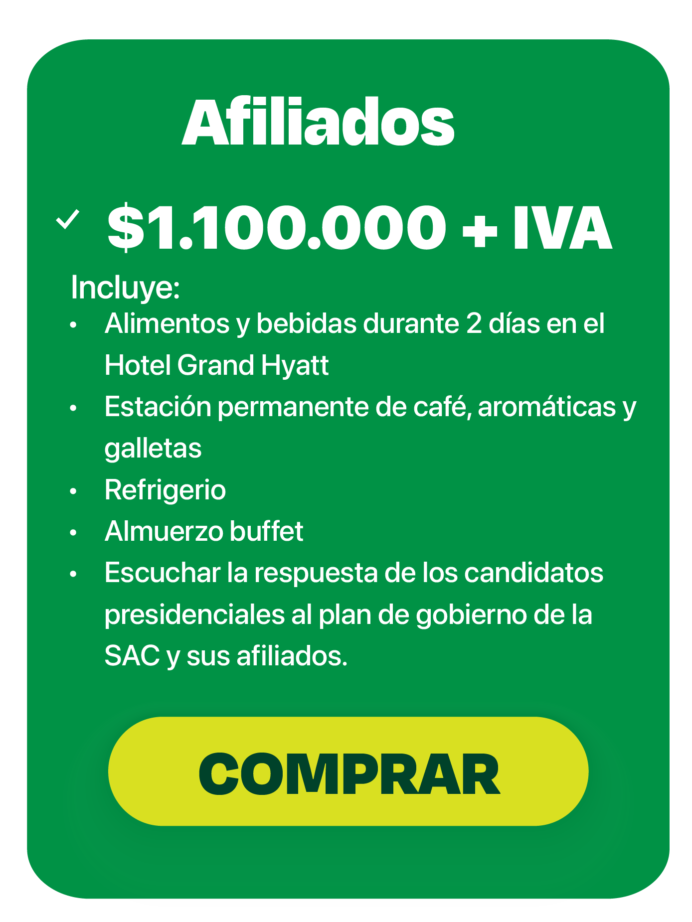 La Sociedad de Agricultores de Colombia (SAC) y sus 21 sectores afiliados invitan al 41° Congreso Nacional Agropecuario, que se realizará los días 26 y 27 de noviembre en Bogotá en el Hotel Grand Hyatt.