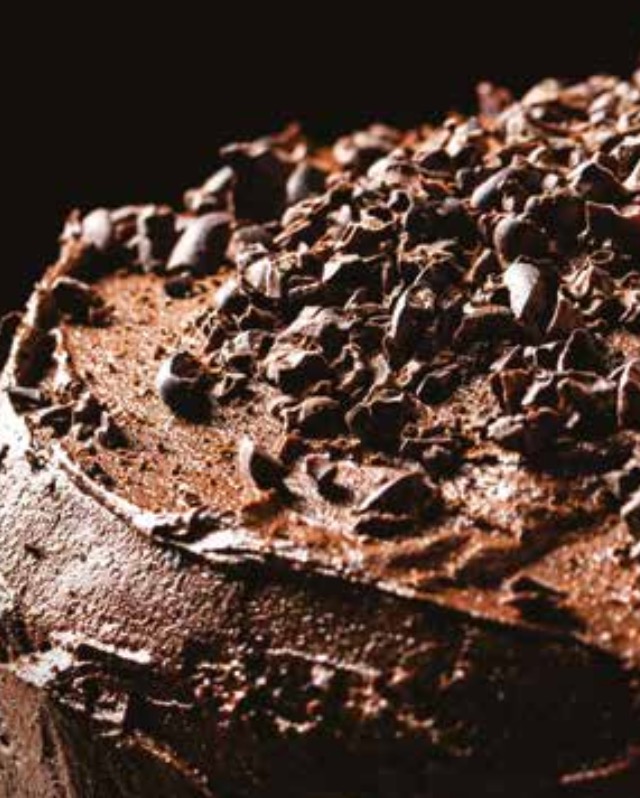 Desmoldar la torta, cubrirla con la cobertura de chocolate fundida previamente.